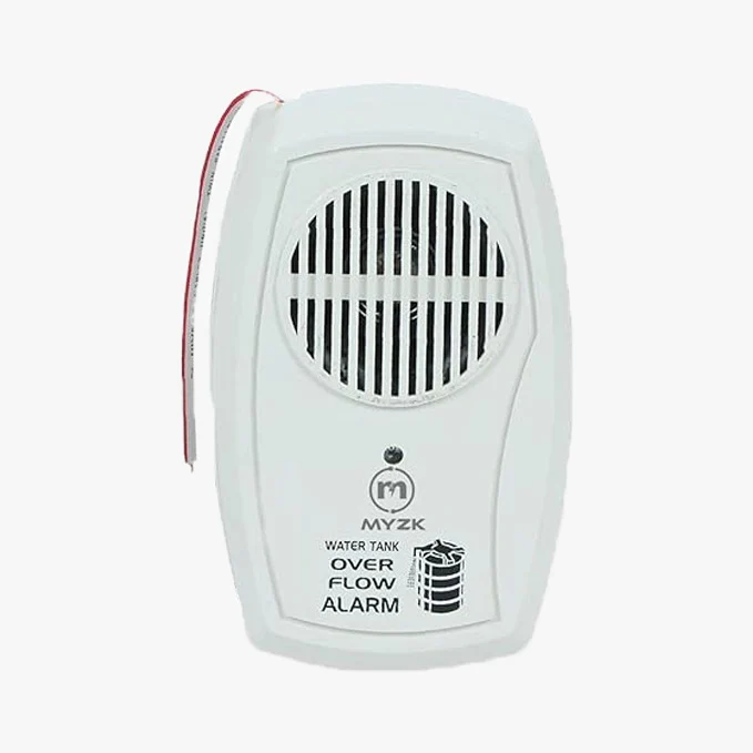 The Water Tank Overflow Alarm in white alerts with loud Hindi and English voice warnings when the tank is full, preventing water wastage. Its LED indicator and durable design ensure reliable, easy monitoring for homes.